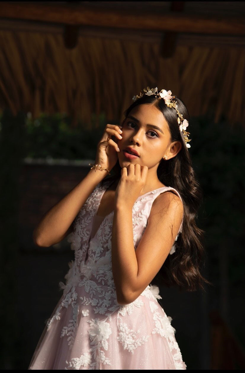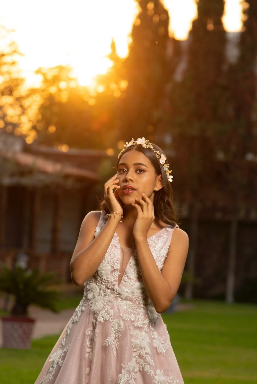 Una pieza con un toque de colores pastel y dorados harán de esta el toque único para ese gran día.