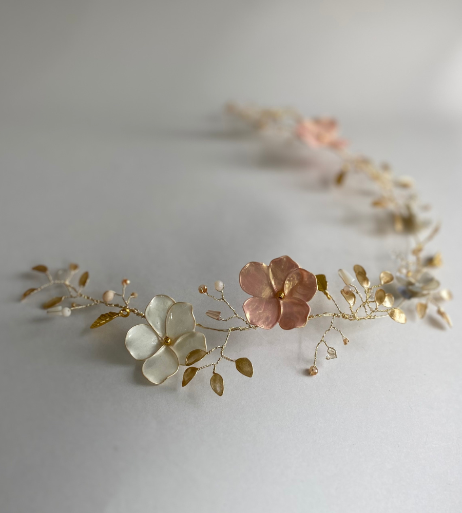 Pieza flexible y puede moldearse y usarse al frente tipo corona completa o para un peinado recogido o semi recogido en algún trenzado o envolviendo